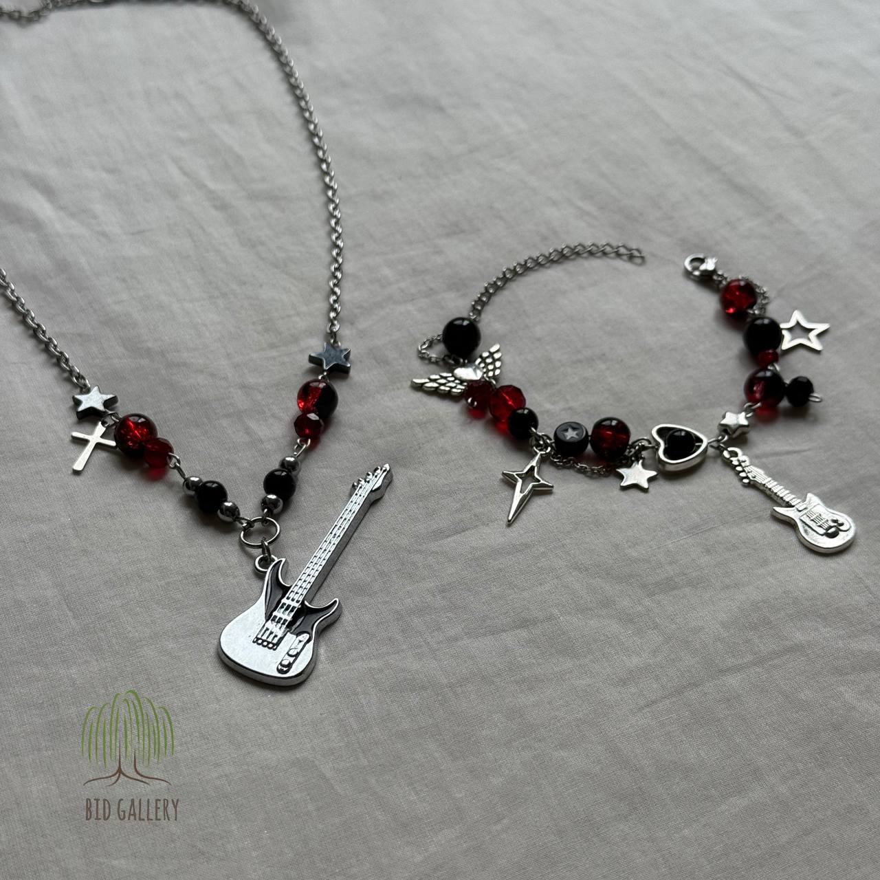 تمام استیل و رنگ ثابت بجز ( پلاک گیتار و اسپارکل و بین کاری های نقره ای که نیاز به مراقبت شما خوشگلا دارن )