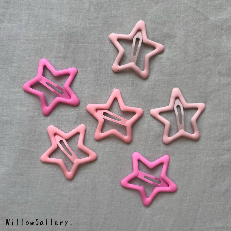 گیره تق تقی ستاره سایز متوسط و شمعی مات ( پک دو عددی طیف صورتی )