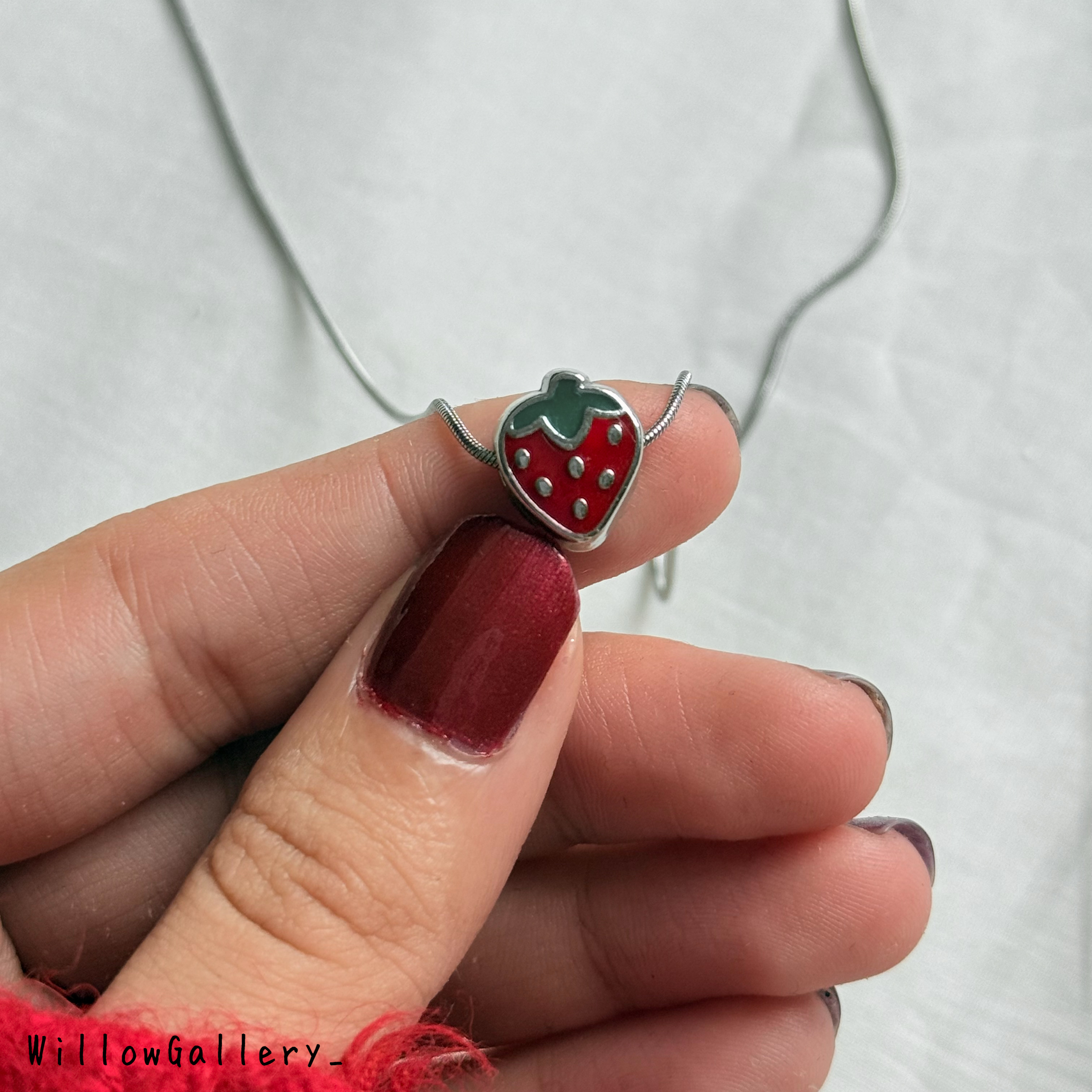 - زنجیر گردنبند تمام استیل و رنگ ثابت ، پلاک توت فرنگی آبکاری استیل قوی