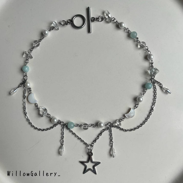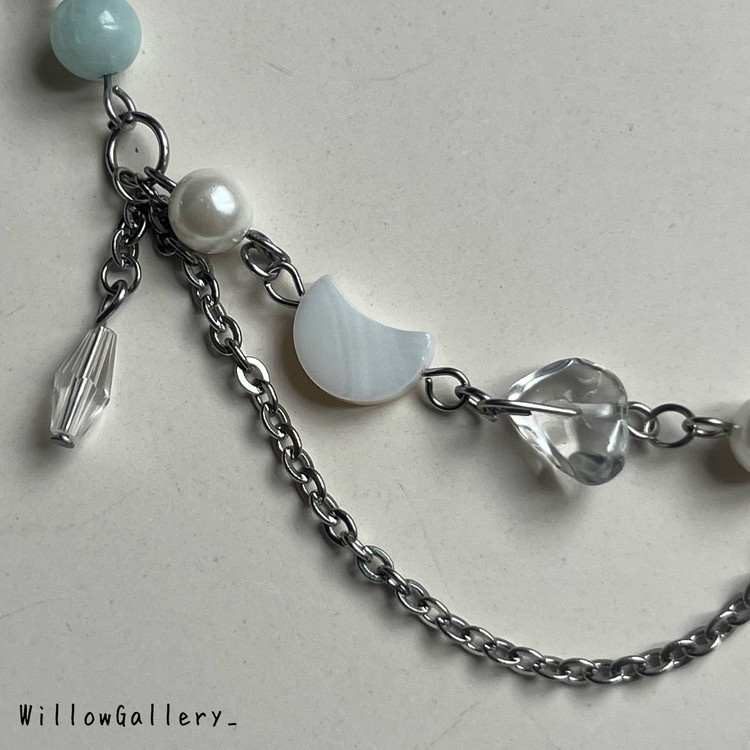 توی ساخت این زیبا سنگ کوارتز شفاف نامنظم ، اونیکس شفاف ، سنگ اونتورین طبیعی ، سنگ صدفی ماه ، مروارید شِل (که رنگ ثابته و پوسته پوسته نمیشه) و کریستال استفاده شده✨